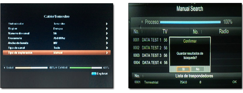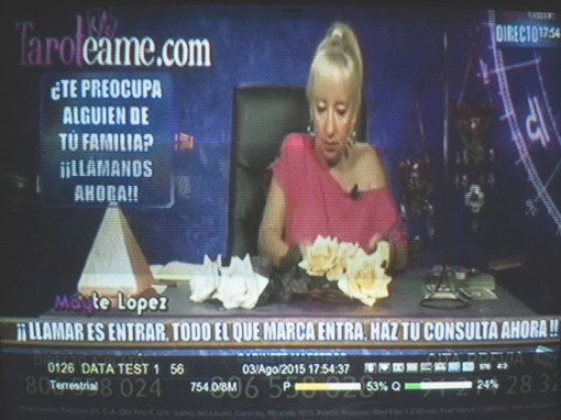 A esto hay que añadir las interferencias que años después, en 2011, se producían desde la localidad de Cabanillas del Campo impidiendo ver Telemadrid en buena parte de Toledo y Guadalajara, y como en cierta medida pienso que sigue pasando con Castilla La Mancha TV; pues pese a agradecer el cambio de frecuencia de la demarcación local de Pozuelo, una emisión ilegal de un canal de videncia captada en la zona sur de Madrid e identificada con los programas «Datatest 1, 2, 3 y 4«, emite en el mismo múltiplex 56 que utiliza Castilla La Mancha Televisión para la provincia de Guadalajara, al igual que me resulta sospechoso que el múltiplex 23 correspondiente a dicha autonómica en Toledo también esté ocupado por una señal de hasta un 51 % en potencia y calidad, sin que contenga ningún programa en su interior, tal y como se puede apreciar en las imágenes (pincha en la imagen para agrandar)