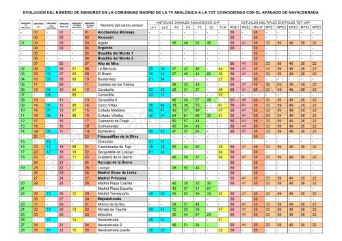 Como ya hemos indicado en varias ocasiones, y en especial en la consulta pública de los 700 Mhz enviada al por entonces Ministerio de Energía, Turismo y Agenda Digital, el cese de las emisiones de televisión desde el conocido transmisor de Navacerrada, en Madrid, nos ha dejado importantes carencias que ha habido que suplir con una elevada presencia de centros emisores, llamando la atención el incremento exponencial sufrido tanto en el caso de Telemadrid, pasando de 23 a 59 estaciones, como los correspondientes a TVE, que pasan igualmente de 24 a 51; dando como resultado hasta 36 y 27 emisores más, cuyo cómputo total suponen más del doble de los empleados durante la anterior televisión analógica para el mismo territorio.